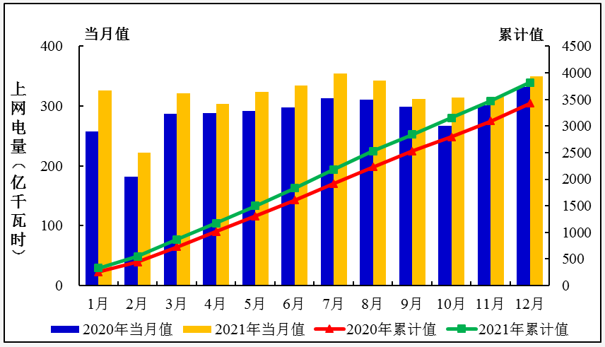 图3:2020、2021年1-12月全国运行核电机组上网电量趋势