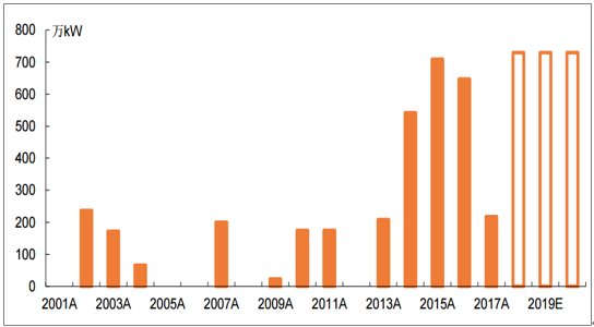 按规划2018-2020年需年均新增装机736万kW