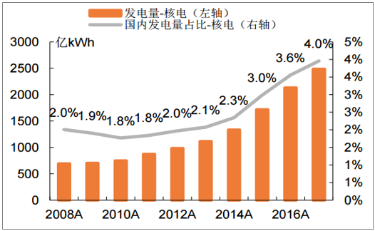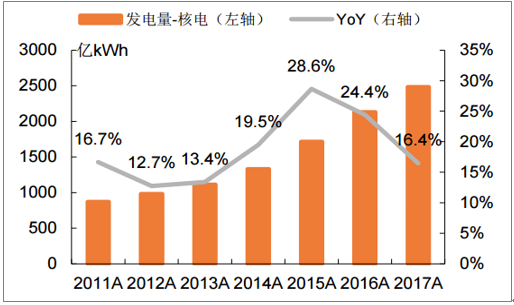 2011-2017年核电发电量年均增速18.7%