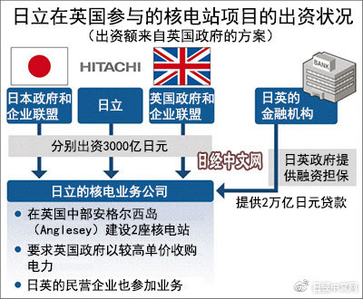 应日立要求,4月下旬英国政府提出了“由日英双方的政府及企业联盟,还有日立三方各出资3千亿日元”的方案。但是直至4月底各方仍未就此达成正式协议。英国政府对直接向核电站新设项目投资态度消极,预计日立将通过直接谈判要求英国政府采取增加出资等举措并做出保证。