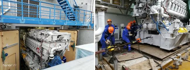 柴油机抵达现场后,工程公司与业主、施工单位、厂家严格执行作业方案和施工计划,施工单位各作业队最大可能平行施工,在2018年6月19日具备启动条件,提前进度计划要求6天,在返厂维修最短记录基础上,又创造了一个回场后复装的最短记录!