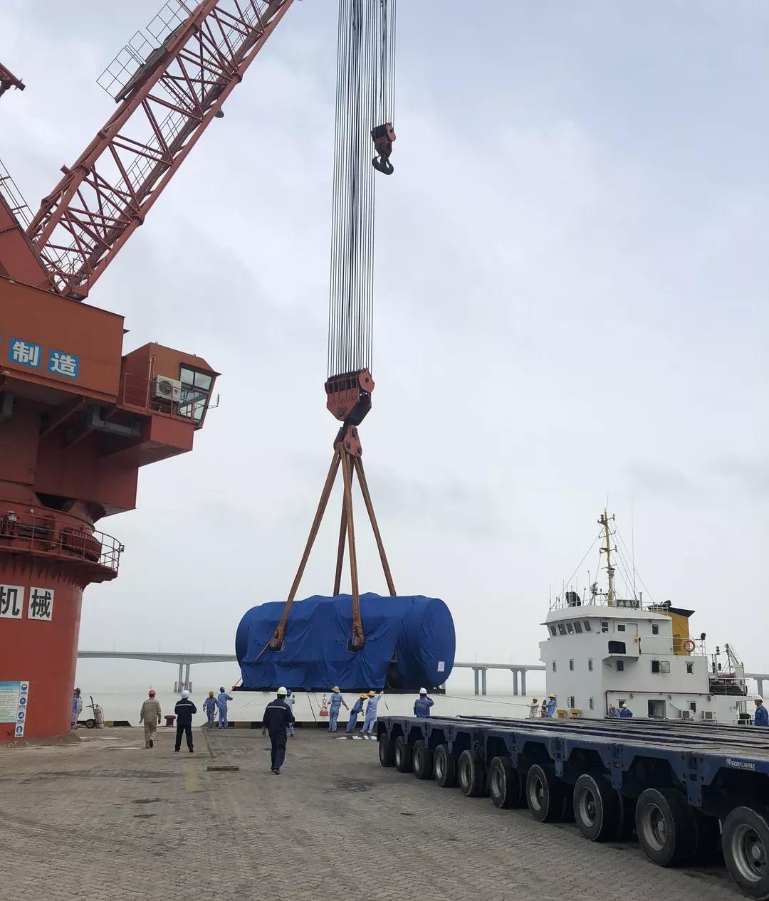2018年8月28日10点58分,田湾5号机组发电机定子平稳落在发电机台板上,历时42分钟顺利完成吊装就位!