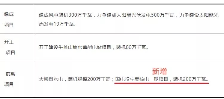 ......结合黄河黑山峡河段水利工程进度,适时开展大柳树水电站前期工作。根据国家内陆核电发展政策,积极推进核电项目厂址普选论证及保护工作。(新增)”