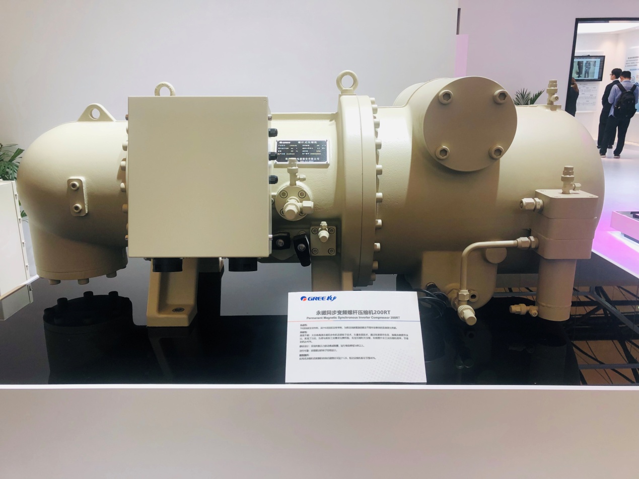 (图为2019酒店展现场展示的格力永磁同步变频螺杆压缩机)