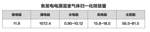核电链是各种发电电源中温室气体排放最低的电源类型之一。