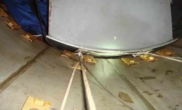 2.4 从汽端用绳索拉定子铁芯保护层橡皮板,使其覆盖住定子铁芯底部区域。(穿铁芯保护层压纸板的同时带入一根φ8mm×15m的涤玻绳作牵引滑板之用)