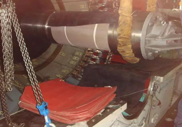 5.2 行车缓缓抬起励侧转子,取出励侧转子铁芯与滑板间的层压纸板。