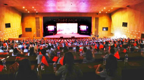 在青春快闪《我和我的祖国》动人旋律下,全场观众一起合唱这首歌颂祖国的歌曲,悦动的青春和深情的演唱为本次巡讲拉下帷幕。