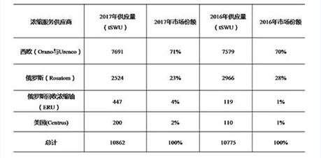 欧洲市场铀浓缩供应格局