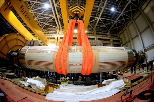 发电机主要用于将动能转换为电能。福清核电5号机组发电机由东方电机有限公司研制生产,具有自主知识产权。发电机主要由定子、转子、端盖及轴承等部件构成,其转子重约240吨,最大直径超过2米。