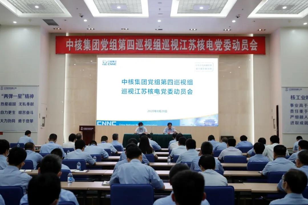 随后在江苏核电召开中核集团党组第四巡视组巡视江苏核电党委工作动员会。中核集团党组第四巡视组组长毕升作巡视动员讲话,江苏核电党委书记、董事长刘兆华作表态发言。中核集团党组第四巡视组副组长卢远东、郭会东及全体组员,江苏核电党委委员、总经理部成员、副处级及以上干部、职工代表、党群纪检、组织人事有关部门人员参加会议。