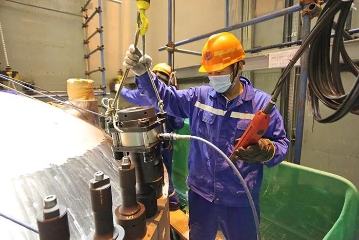 9月5日11时44分,随着高温气冷堆示范工程2号反应堆主氦风机顶盖安装螺栓拉伸完成,示范工程首台主氦风机安装工作全部完成,标志着高温气冷堆示范工程首堆一回路系统设备安装全部完成并移交业主。