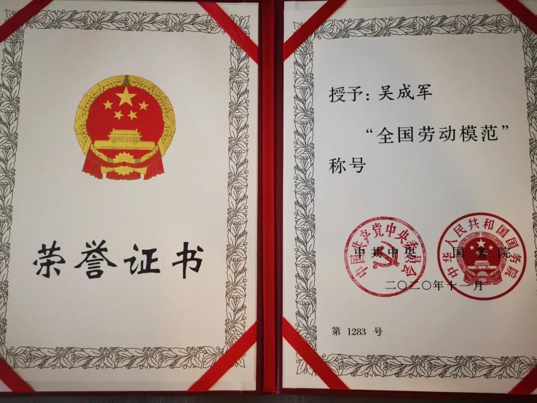 11月24日,2020年全国劳动模范和先进工作者表彰大会在北京召开,中国核电旗下海南核电吴成军荣获“全国劳动模范”荣誉称号,在人民大会堂接受表彰。