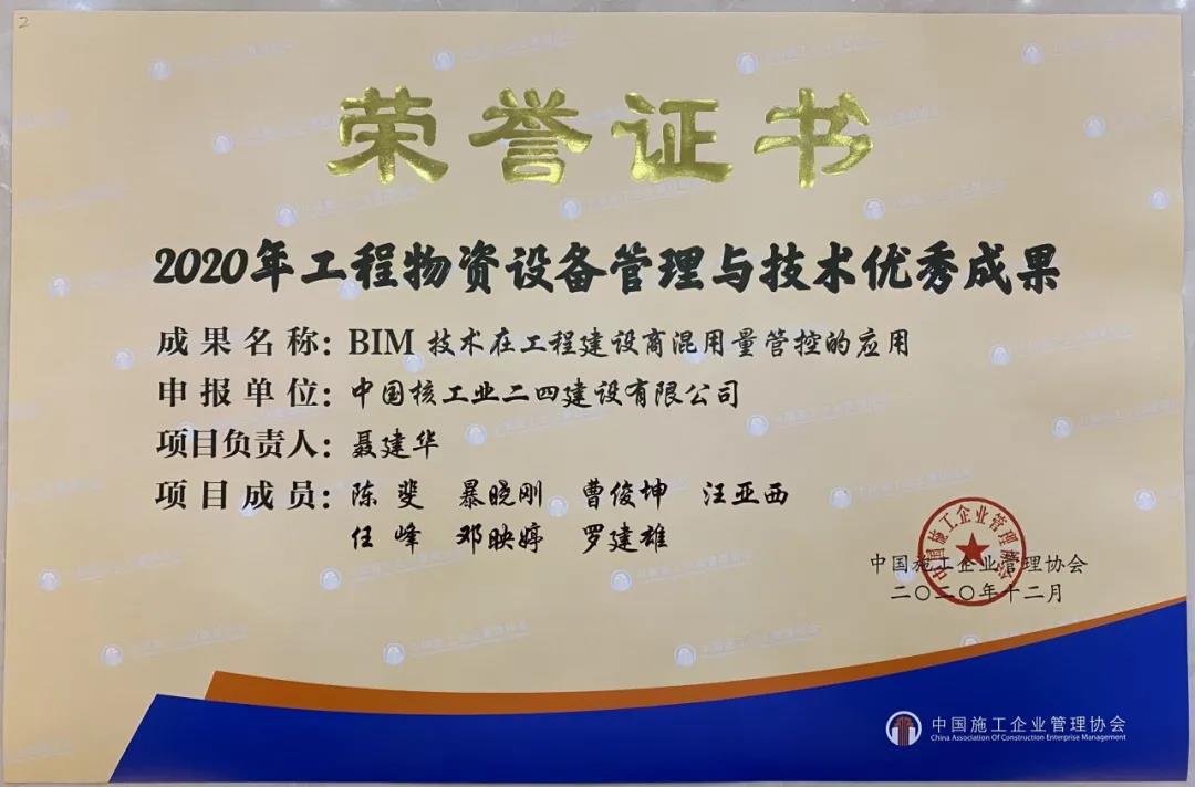 近日,公司被中国施工企业管理协会授予“2020年度工程建设诚信典型企业”称号,同时有两项创新成果——《工程机械设备巡检APP》和《BIM技术在工程建设商混用量管控的应用》获评“2020年工程物资设备管理与技术优秀成果”。