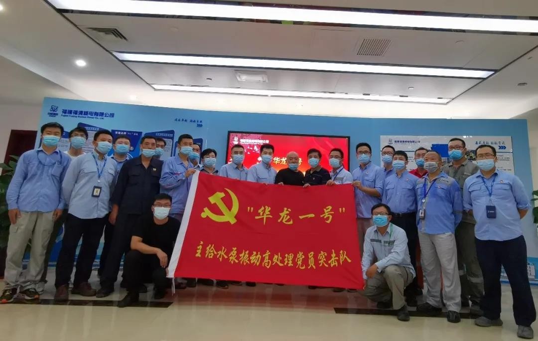 为了尽快解决5号机组主给水泵组振动问题,2020年7月8日,福清核电组织中核工程公司福清项目部、上海阿波罗、佳木斯电机和中核五公司等多家单位联合成立 “华龙一号”主给水泵振动高处理党员突击队,着力解决设备的难题。这支队伍有35名成员,平均年龄37岁,由福清核电华龙维修专家组彭兴华、中核集团技术能手杨全超和徐强、泵设计制造厂家技术副总经理石树智、中核五公司安装人员等组成,包含了业主、厂家和安装业务骨干成员。