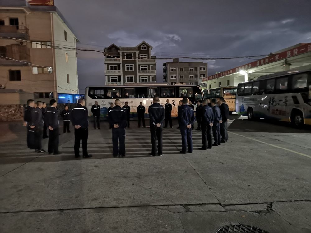 顶着悬在头上的残月,驾驶员们开始起床洗漱,完成例行的车检、车容车貌整理和酒精测试等规定流程后,围成一圈开始了一天的早班会。