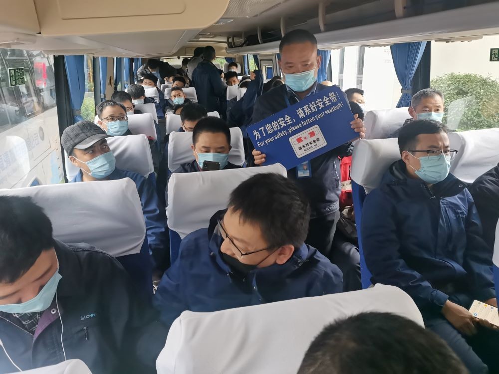 车辆准时停靠,整齐摆放、检测体温、佩戴口罩、安全带提醒,防疫安全两不误。一个小时的车程,员工们在座椅上小憩片刻、或是听听音乐,驾驶员们此时需要保持十二分精神,全神贯注整个过程,眼观六路、耳听八方、谨小慎微,安全、舒适、准时将员工送达。