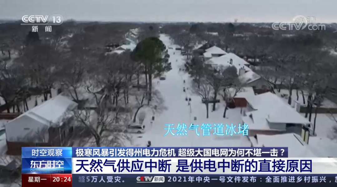 电源安全性低是此次停电事故的根本原因。受极端天气影响,占美国得州总发电量70%的天然气和风力电源机组出力下降40%,导致上网电量与用电负荷严重失衡。作为主要发电燃料的天然气因气井冻结和管道冰堵导致断供,无法持续发电,造成3000万千瓦的电力缺口。作为第三大电源的风电因风力涡轮机冻结导致发电设施瘫痪,凸现出可再生能源易受气候影响、可靠性低的问题。