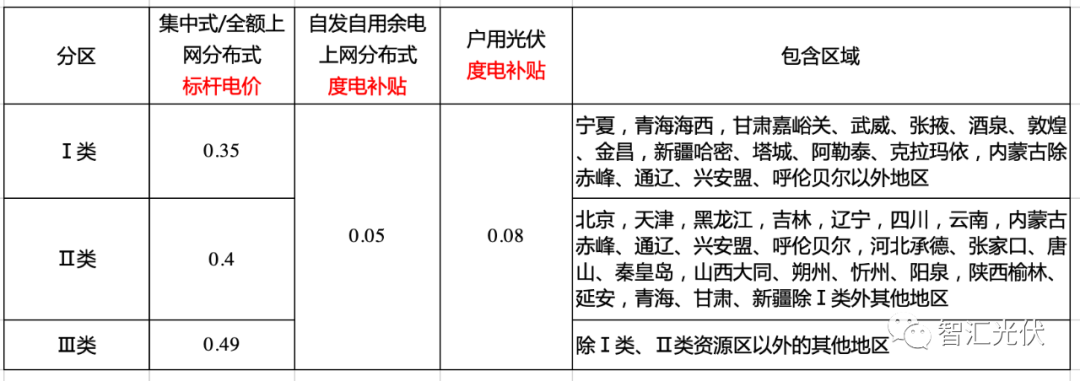 2019年4月28日,《国家发展改革委关于完善光伏发电上网电价机制有关问题的通知》(发改价格〔2019〕761号),将集中式光伏电站标杆上网电价改为指导价,新增集中式光伏电站上网电价原则上通过市场竞争方式确定,不得超过所在资源区指导价。2021年开始,除户用光伏以外,光伏项目将全面去补贴,进入平价时代。表:2020年光伏项目指导电价(单位:元/kWh)