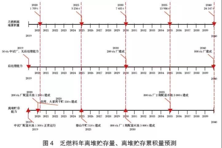 某一时间节点的乏燃料离堆贮存累积量减去截至这一时间节点乏燃料的离堆贮存能力和乏燃料的后处理量,即截至该时间节点实际需要离堆贮存的乏燃料量—乏燃料离堆贮存需求量。