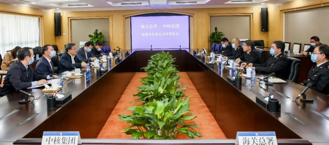 3月22日,中核集团党组书记、董事长余剑锋与海关总署副署长、党委委员王令浚代表双方在京签署战略合作备忘录。双方将以习近平新时代中国特色社会主义思想为指导,深入贯彻海关“科技兴关”和中核集团“三位一体”战略部署,紧密围绕海关业务改革和中核集团技术成果应用开展全面合作,携手打造最具国际竞争力的海关监管体系和先进核科技工业体系,实现双方高质量发展,为构建以国内大循环为主体、国内国际双循环相互促进的新发展格局贡献力量。