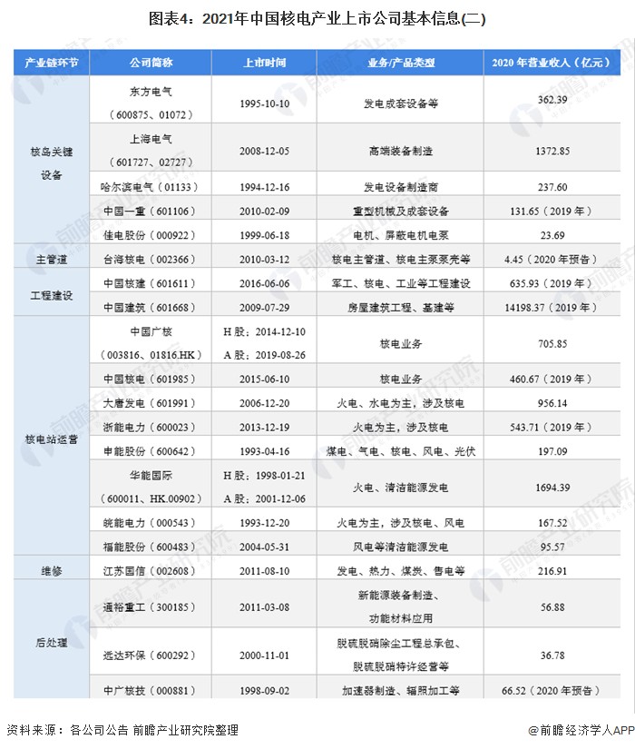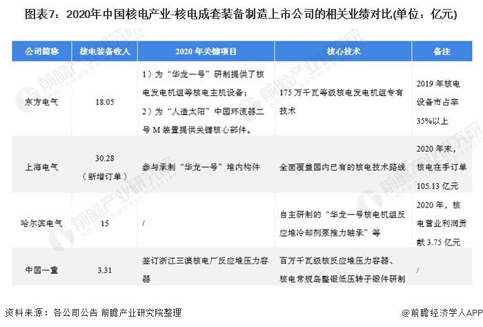 2、核电产业-核电成套装备制造上市公司业务布局对比