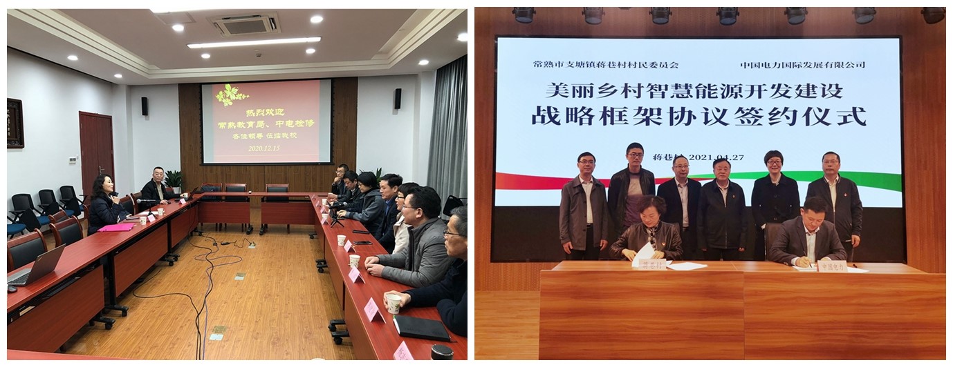 2021年4月27日,公司代表中国电力与“全国农村现代化建设示范村”常熟市蒋巷村签订美丽乡村智慧能源开发建设战略框架协议。双方将在智慧能源、智能微电网、数字化建设等方面开展全方位深度合作,树立清洁能源企业与美丽乡村合作典范,打造“碳中和”农村样板,积极落实国家“3060”碳达峰碳中和目标及建设生态宜居乡村战略。