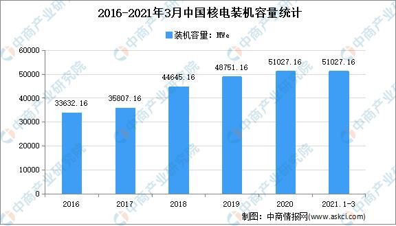 我国是世界上少数拥有比较完整核工业体系的国家之一,一直有序、积极的推进核电的应用。从核电装机容量来看,近年来保持向好的趋势。数据显示,截至2021年3月31日,我国运行核电机组共49台(不含台湾地区),累计装机容量为51027.16MWe(额定装机容量)。