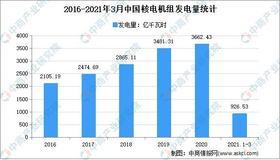 2021年1-3月全国累计发电量为19051.5亿千瓦时,运行核电机组累计发电量为926.53亿千瓦时,占全国累计发电量的4.86%。与燃煤发电相比,核能发电相当于减少燃烧标准煤2558.47万吨,减少排放二氧化碳6703.19万吨,减少排放二氧化硫21.75万吨,减少排放氮氧化物18.93万吨。