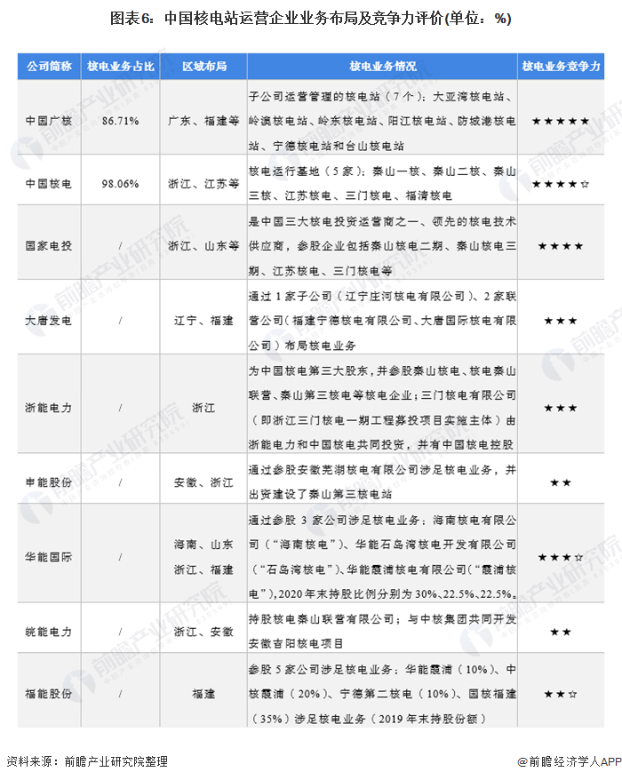中国广核、中国核电的核电业务布局最广,这两家企业重点布局在长三角、珠三角地区,其他上市公司则基本通过参股方式参与核电业务的经营。
