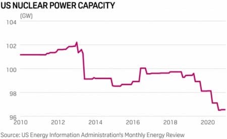 美国仍然是世界上最大的核电生产国,美国28个州的94座反应堆生产的电力超过美国的20%。这些工厂的平均寿命为39年,通常,其经营许可证可延长至40年。尽管核能似乎对于实现气候目标必不可少,但由于更便宜的碳基替代品将其定价排除在市场之外,核能的地位正日益受到压力。