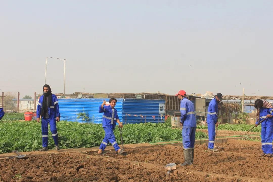 为改善职工一日三餐的膳食结构,2016年,黄新亮带领项目职工发扬三五九旅“南泥湾”革命精神,自己动手,丰衣足食,在“中国村”住地周边的沙漠开荒种菜。