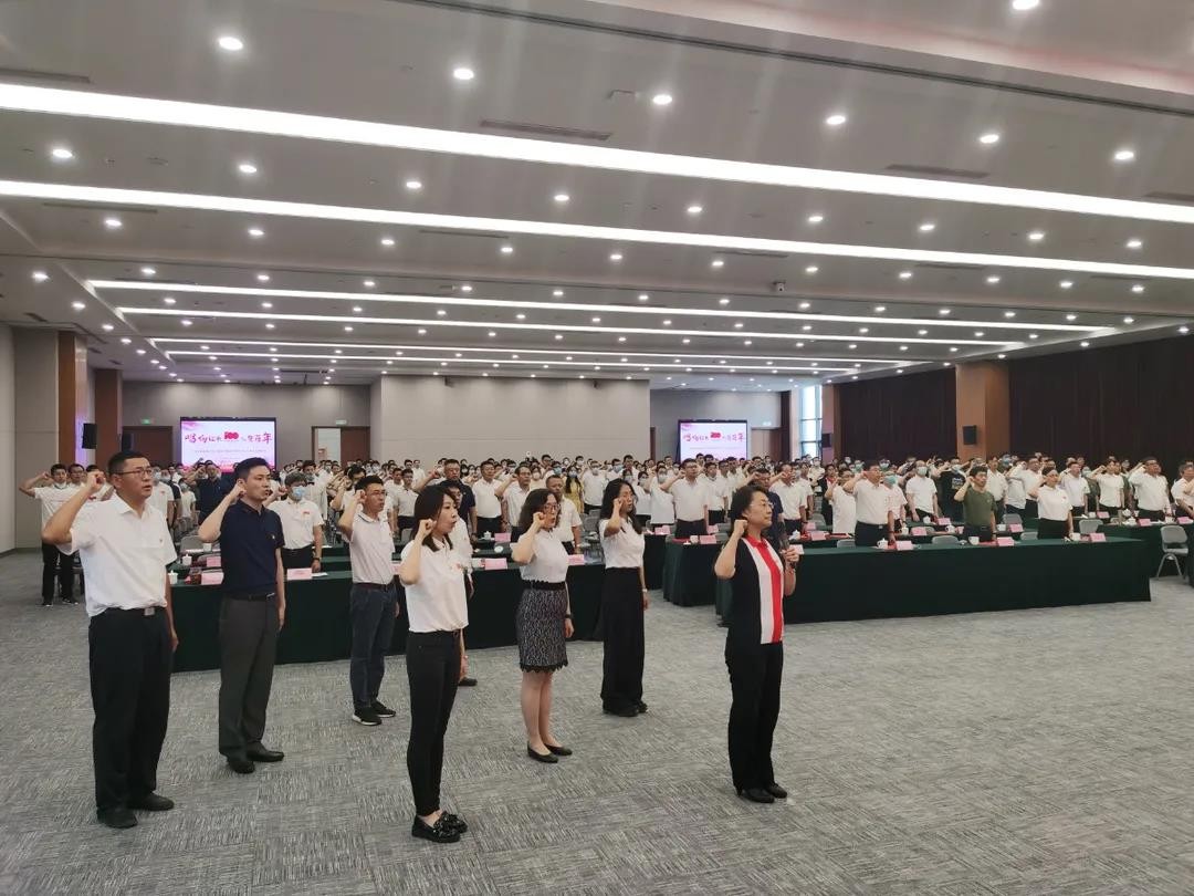 在新党员入党宣誓、老党员重温入党誓词环节,领誓人带领7名新党员和全体党员干部面对鲜红党旗高举右手、握紧拳头,大声宣读入党誓词,铮铮誓言响彻会场,大家坚定的目光、洪亮的声音,道出了对党的忠诚、对事业的执著。