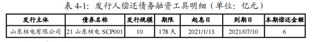 记者从上海清算所获悉,山东核电有限公司7月5日发布了《山东核电有限公司2021年度第六期超短期融资券发行文件》。根据文件, 发行人本期超短期融资券计划募集资金6 亿元,用于偿还到期债务融资。