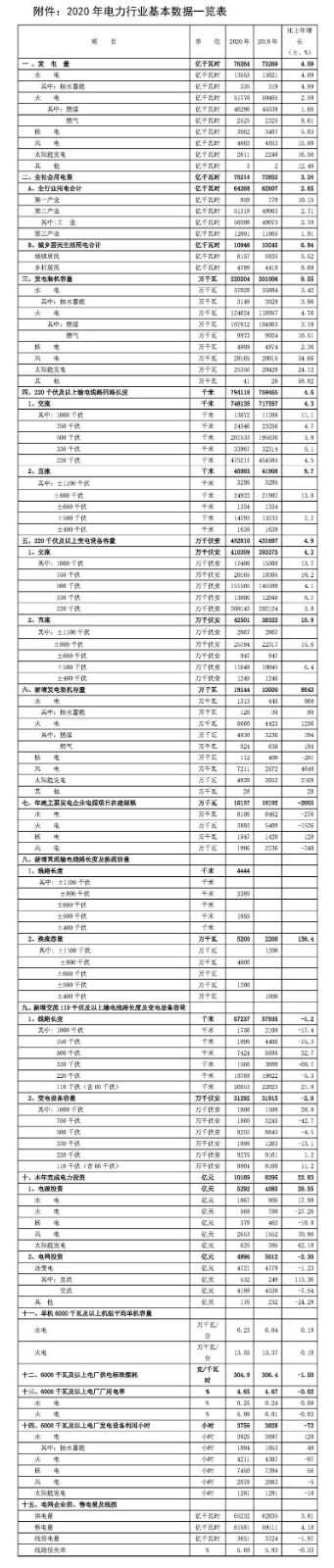 ② 2020年电力数据均来自中电联2020年度统计数据(简称“年报数据”),数据因四舍五入的原因存在总计与分项合计不等的情况,后同。