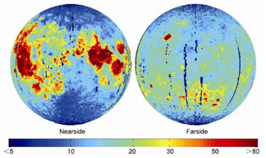 基于遥感数据估算的月壤氦-3丰度分布图(单位:ppb/m2)