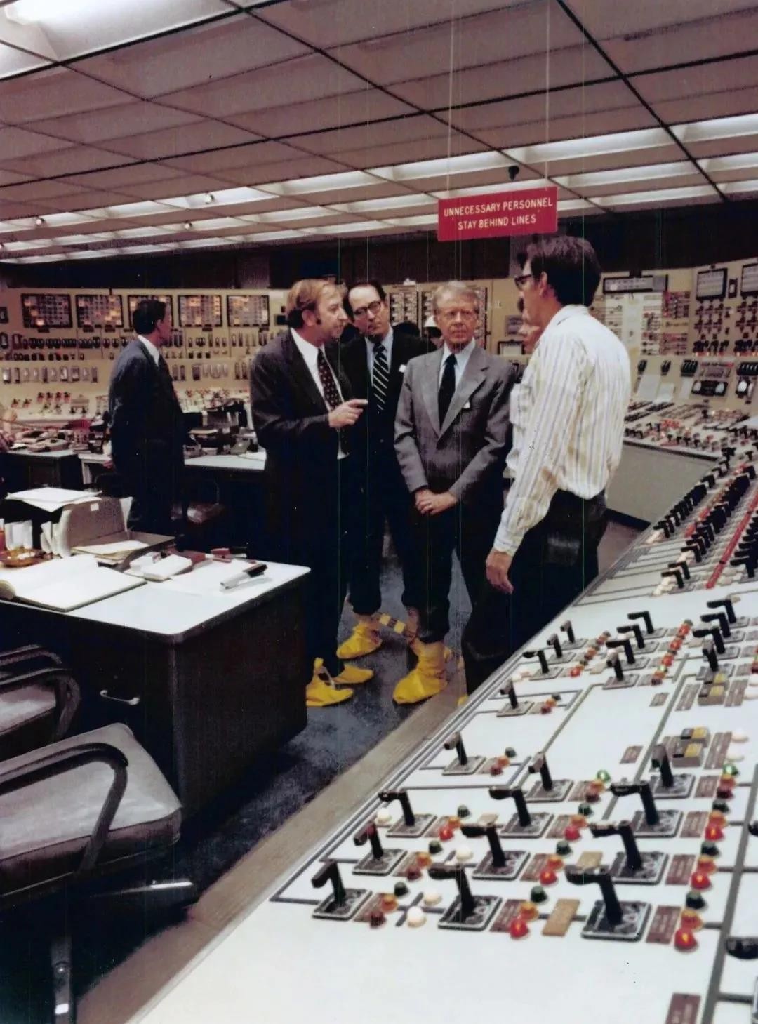 1979年4月1日卡特夫妇在丹顿、宾州州长陪同下参观主控室