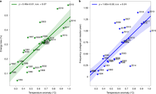 回顾性的分析进一步表明,温度每升高 1℃(高于 1951 - 1980 之间的平均),发电厂的能源输出也下降了约 0.5% 。