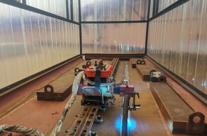 事业部积极打造钢结构施工集约化和专业化管理平台,以科技创新为宗旨,持续进行新工艺、新设备、新技术的开发及应用,目前激光智能跟踪MAG自动焊技术已经在多个核电项目钢衬里底板、壁板中成功应用,在国内首次实现核级钢衬里现场安装高效智能的MAG焊应用“零”的突破,攻破了“卡脖子”技术问题,实现国内首创、国际先进。