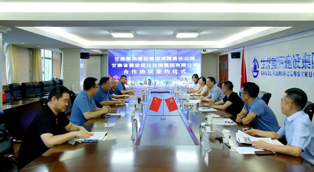 8月16日,甘肃四建与甘肃省建设设计咨询集团有限公司(以下简称“设计咨询集团”)举行座谈交流会,签署合作战略协议。设计咨询集团党委书记、董事长罗崇德,党委委员、总经理马岷成一行,甘肃四建党委书记、董事长胡岩,党委副书记、总经理姜俊文等出席签约仪式,仪式由姜俊文主持。