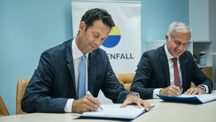 Vattenfall 的 Christopher Eckerberg 和 Westinghouse 的 Aziz Dag 签署合同(图片来源:Vattenfall)