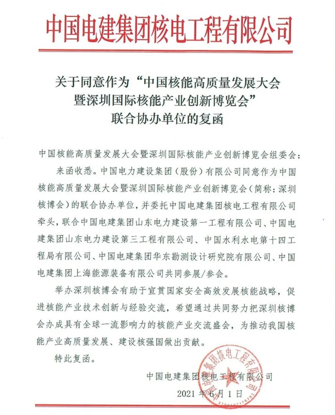 深圳核博会致力于打造具有全球一流影响力的核能产业交流盛会,为推动我国核能产业高质量发展、建设核强国做出贡献,中国电力建设集团(股份)有限公司(以下简称“中国电建”)同意作深圳核博会的联合协办单位,并委托旗下多家单位参展、参会。