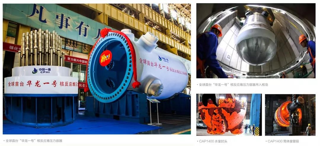 让“国家名片”更美丽,在“华龙一号”示范工程福清、防城港等核电站建设中,中国一重不仅承制了全部6台主设备核反应堆压力容器,还承制了蒸汽发生器、稳压器、主管道等设备及其锻件,并在国际核电市场上展示了中国装备的实力和水平。
