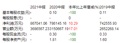 截至2021年6月30日,公司合并报表口径总资产约为3,983.85亿元,较上年末增长1.66%;负债合计约为2,548.37亿元,资产负债率63.97%;归属于母公司股东的权益约为967.13亿元,较上年末增长1.51%。公司实现合并报表口径营业收入约为368.66亿元,较去年同期增长17.01%;归属于母公司股东的净利润约为54.98亿元,较去年同期增长5.63%;经营活动产生的现金流量净额约为157.35亿元,较去年同期增长4.86%。
