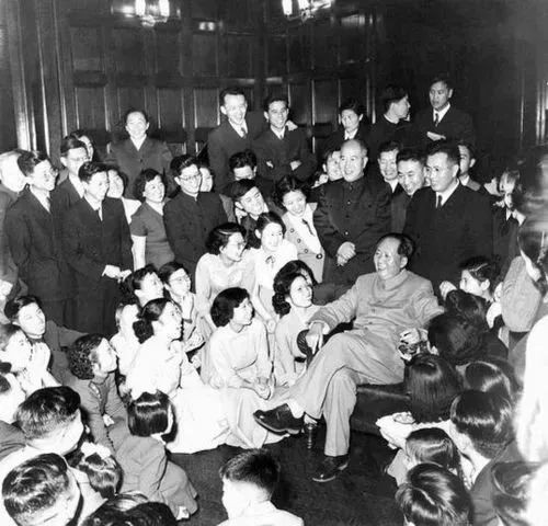 1957年11月,毛泽东在访苏期间到中国驻苏大使馆看望使馆工作人员和留学生代表。