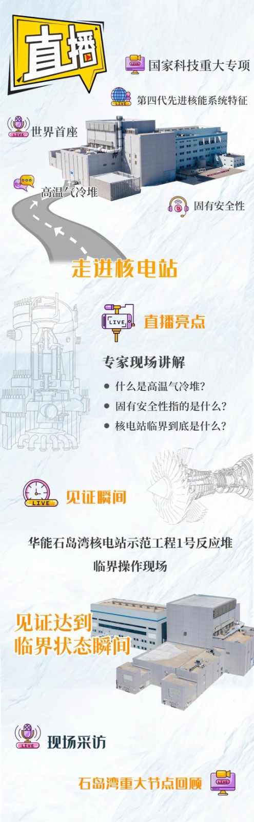 我国具有完全自主知识产权的国家科技重大专项,世界首座商用球床模块式高温气冷堆,华能石岛湾核电站示范工程1号反应堆将达到临界状态,机组正式开启带核功率运行。