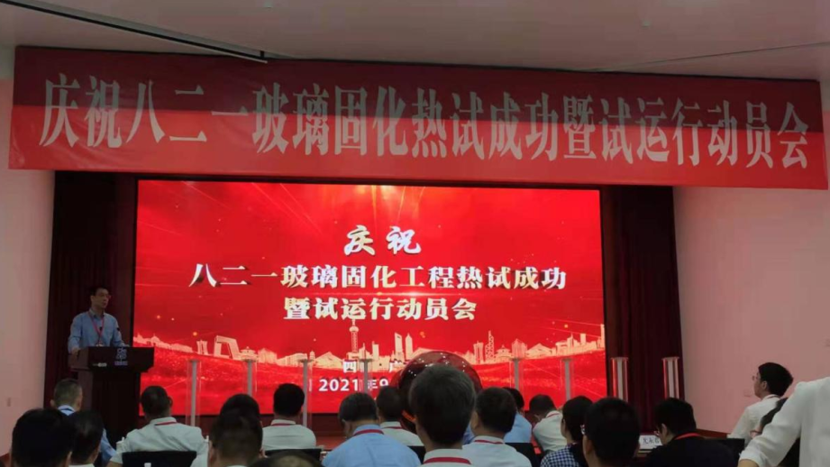 2021年9月11日19时52分,在国家原子能机构总工程师刘永德,中核集团党组成员、副总经理马文军等领导的见证下,我国首座高放废液玻璃固化设施热调试成功。中国原子能作为参建单位参加了八二一玻璃固化热试验成功见证活动以及试运行启动会。