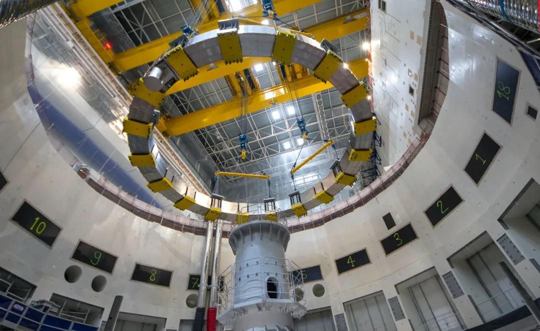 当地时间9月16日,在法国南部卡达拉舍,“人造太阳”国际热核聚变实验堆(ITER)托卡马克装置的最后一个下部主要磁体部件——极向场超导线圈PF5成功落位,标志着ITER项目主机安装第一阶段最后的里程碑完成,为第二阶段真空室安装创造了关键条件,这是由中核集团牵头组成的中法联合体在法国ITER现场啃下的又一块“硬骨头”,有力推进了ITER项目进展。
