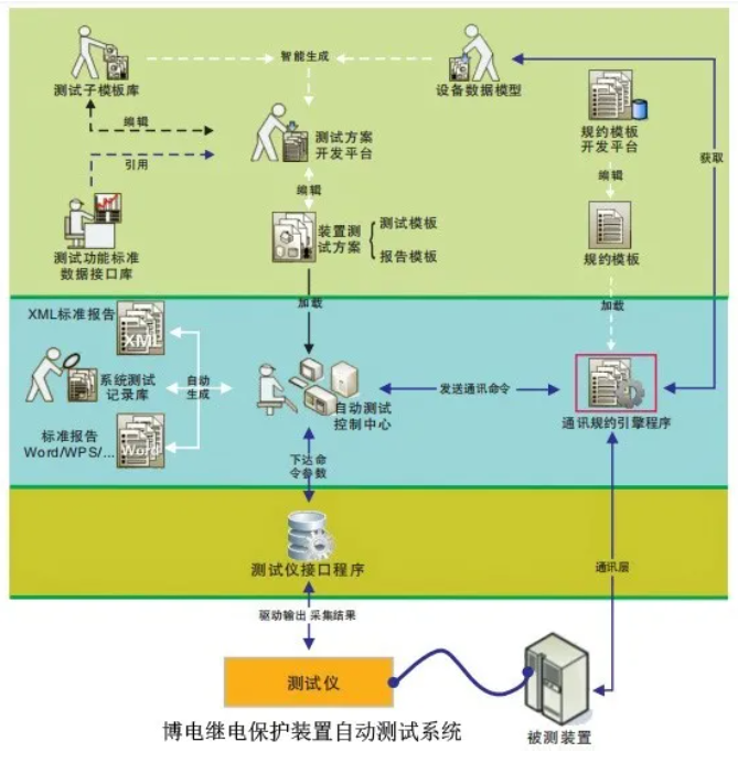 博电科技研发出的智能变电站测试设备覆盖智能变电站站控层、间隔层、过程层,为智能变电站整站测试提供全面、系统、丰富的试验手段。研发出的继电保护自动测试系统可通过继电保护测试仪电压电流的实时输出控制和MMS回采继电保护装置的遥信、遥测及动作报告等信息,实现了继电保护装置现场的遥信、遥测、遥控、保护定值和保护逻辑等继电保护装置的全方位自动测试。