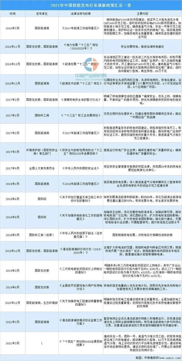 9月22日,中共中央、国务院印发的《关于完整准确全面贯彻新发展理念做好碳达峰碳中和工作的意见》发布。其中关于核电方面,《意见》明确提出积极安全有序发展核电、积极稳妥推进核电余热供暖。以下是2016-2021核能发电行业最新政策汇总一览: